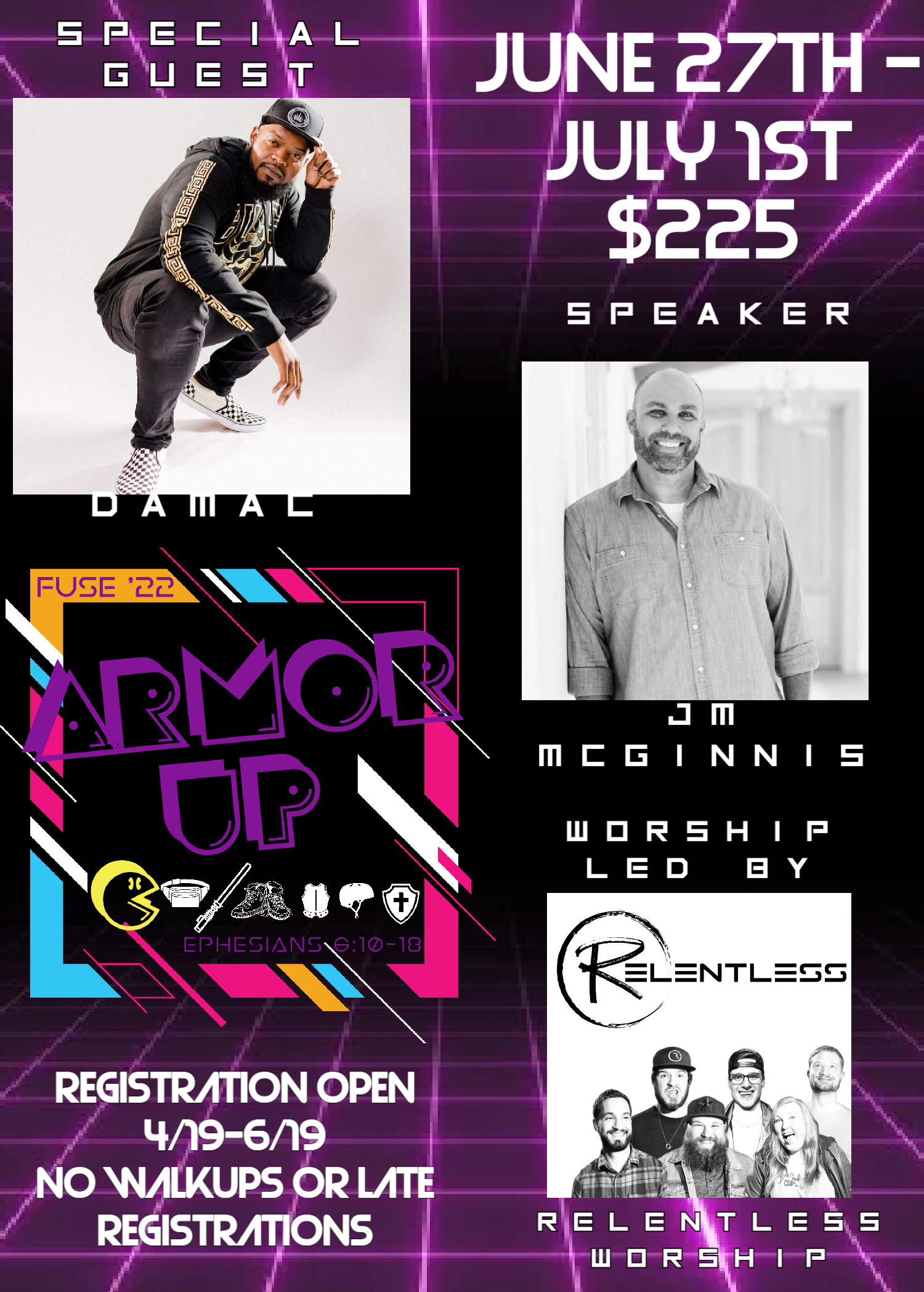 Speaker – JM McGinnis Worship Led by – Relentless Worship Band Special Guest – DAMAC